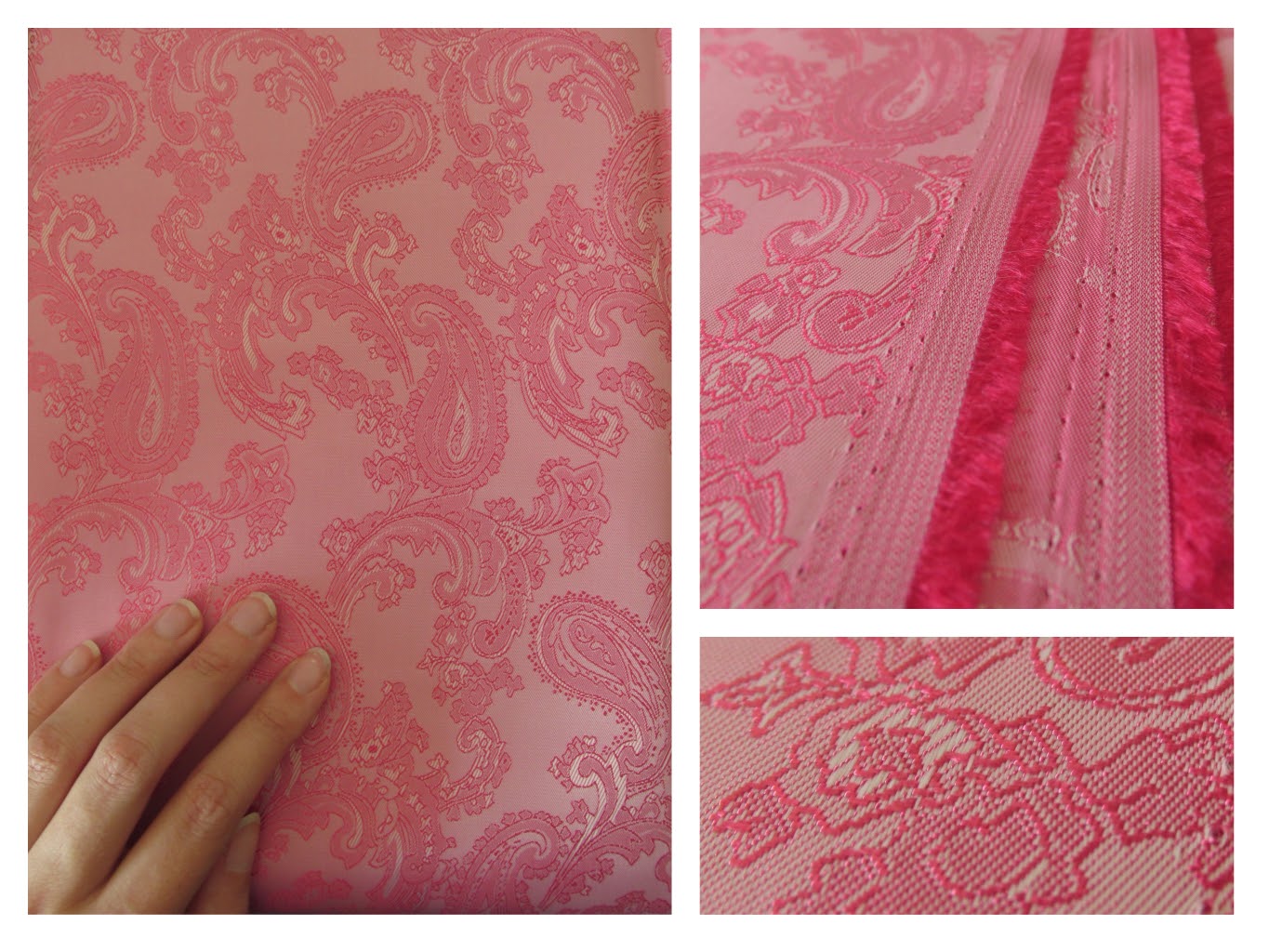 The last piece of fabric is this gorgeous lining fabric with a woven paisley motif in bright pink. It was a bit expensive at 8 euros/m, but it will look SO cool inside a winter coat that I just couldn't leave it behind.