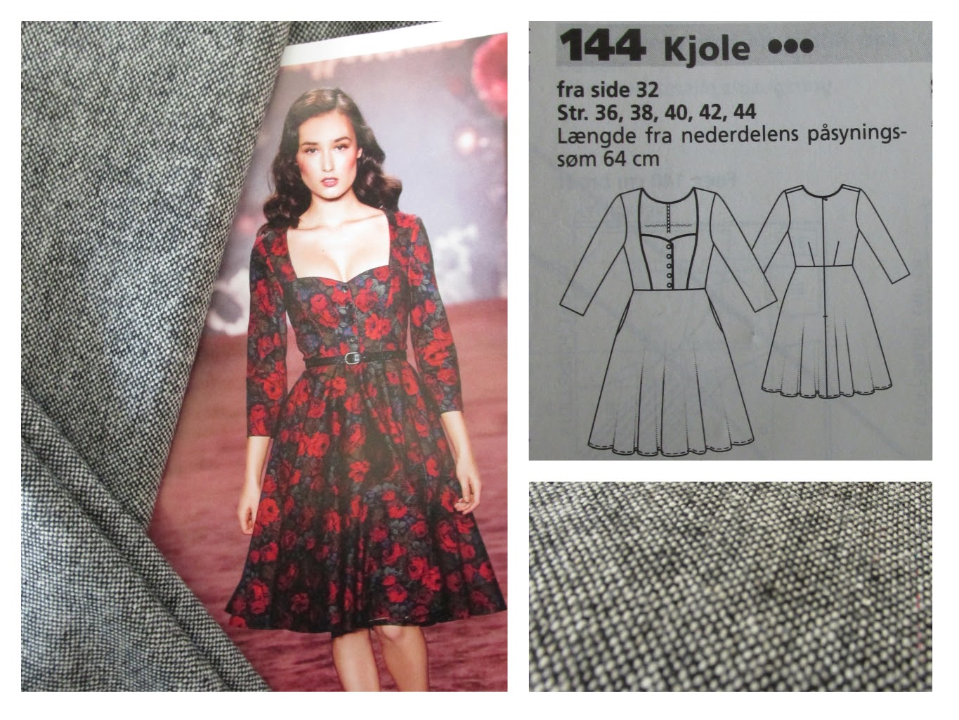 The above-shown fabric was the splurge of the trip. 3 meters of soft wool cloth in a "salt & pepper" weave. I really want to make this Lena Hoschek dress, and luck would have it that Burda made a pattern for it!