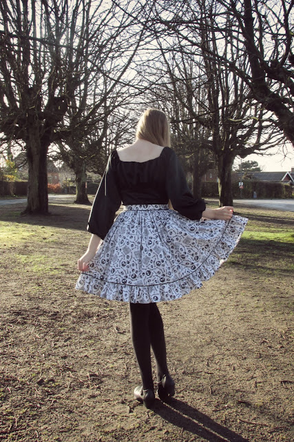 Lovely skirt I like the shape it has the same style as your Christmas dress. I don't celebrate Halloween but it has got bigger here in the UK I think it's more due to American influence. The top is great too, a bit of a gypsy style. x